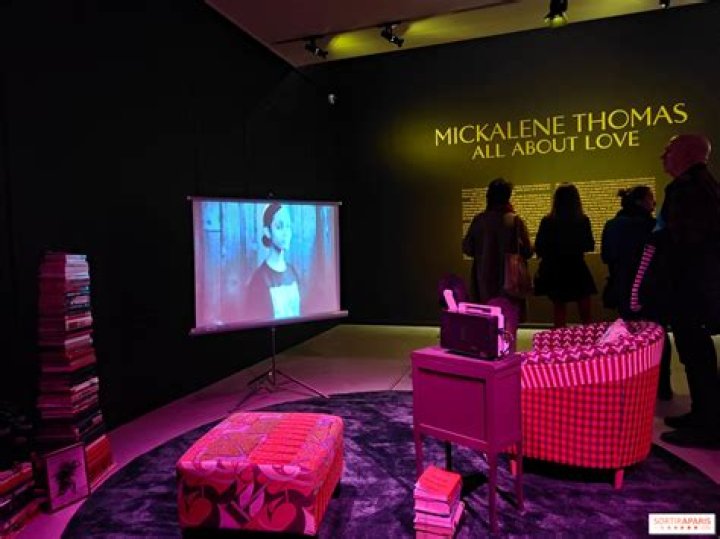 Mickalene Thomas (American, born 1971 ) Mickalene Thomas (American, b. 1971) is a New York-based artist who is best known for her elaborate rhinestone-adorned paintings as well as her use of colorful acrylic paints.